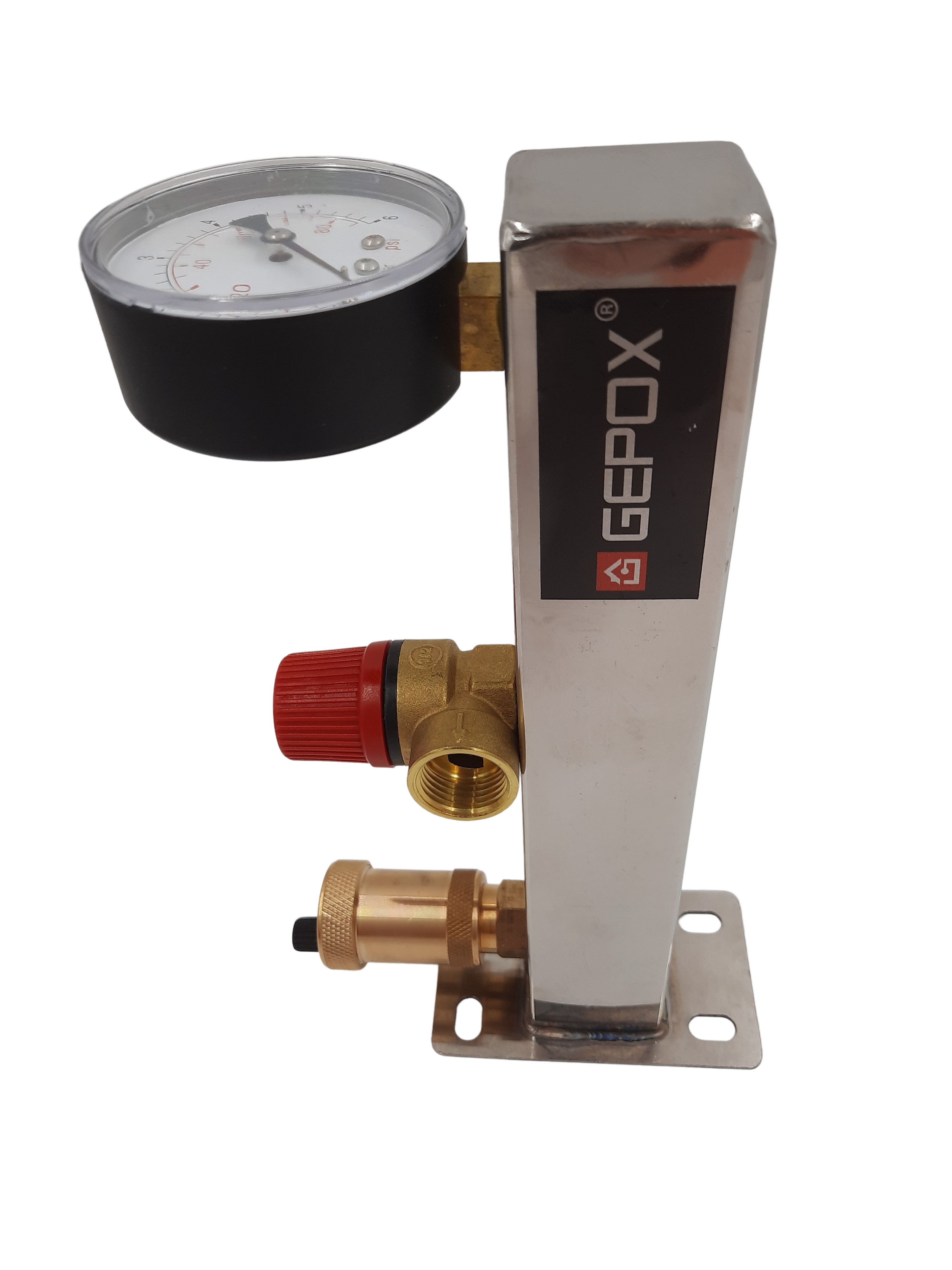 - belka nierdzewna z otworami do podłączenie instalacji i naczynia wzbiorczego ( 2 x GW 3/4"),