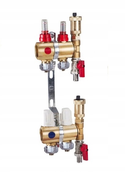 Rozdzielacz do podłogówki 2 obwody mosiężny GEPOX do ogrzewania podłogowego