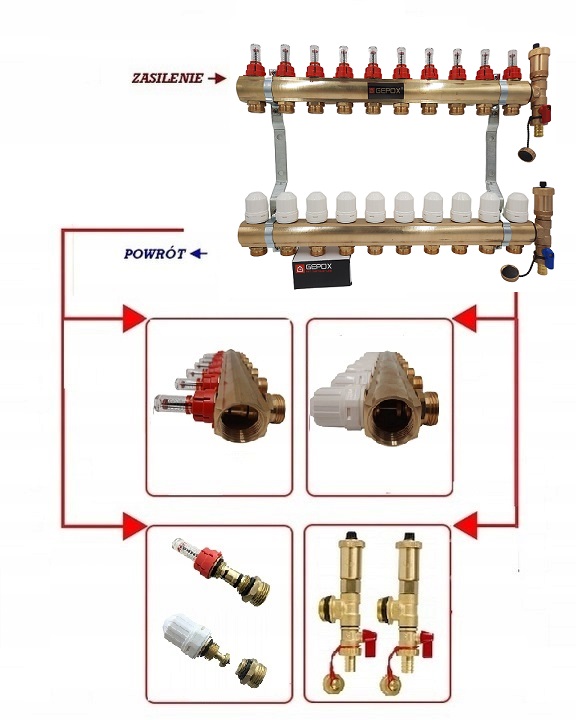 Rozdzielacz 10 do podłogówki GEPOX PL GEP-PRO-10