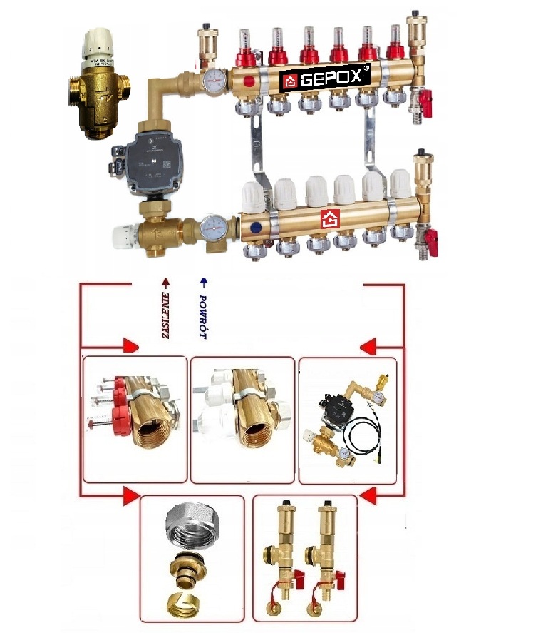Ilość obwodów na zdjęciach jest poglądowa - przedmiotem sprzedaży jest rozdzielacz o ilości obwodów opisanej na aukcji.