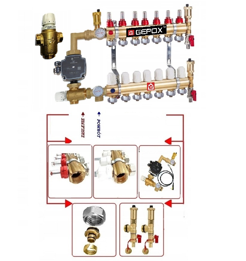 Rozdzielacz przeznaczony jest do instalacji ogrzewania podłogowego.