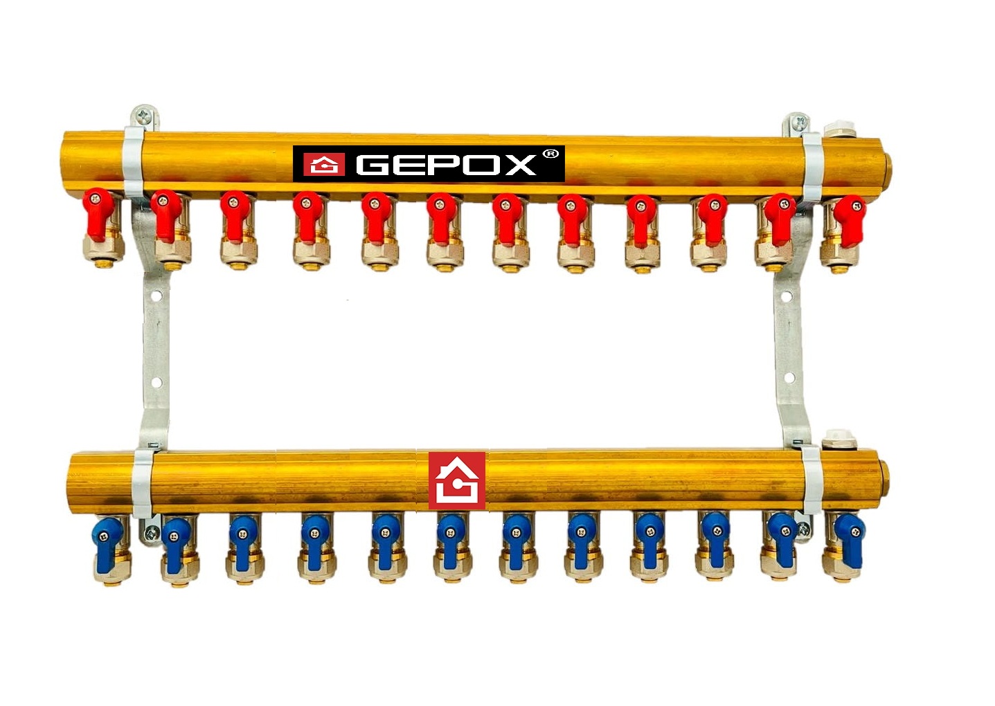 Rozdzielacz C.O. 12 obwodów GEPOX zaworki PEX odpowietrzniki DO GRZEJNIKÓW