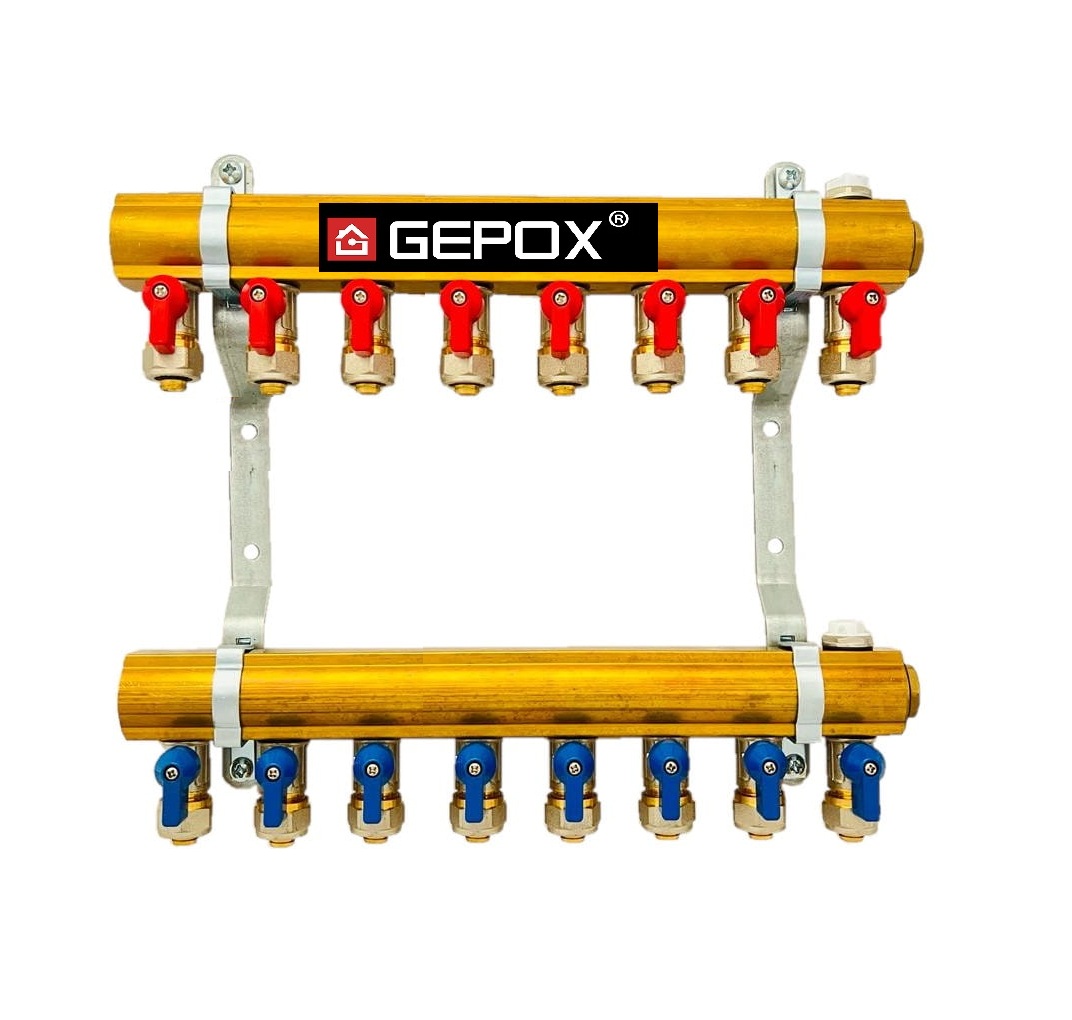 Rozdzielacz C.O. 8 obwodów GEPOX zaworki PEX odpowietrzniki DO GRZEJNIKÓW