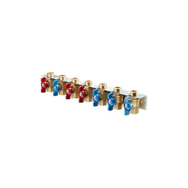 Zestaw 7 zaworów kulowych, pasujących do węzła Regudis W-HTE Oferta obejmuje zestaw zaworów kulowych. Uwaga: Nowy, nieużywany. Cechy produktu: Do odcięcia instalacji grzewczej oraz dopływu i odpływu zimnej i ciepłej wody w module płaskim. Zestaw zawiera: 7 zaworów kulowych przelotowych z uszczelką płaską G 3/4" do modułu i gwintem wewnętrznym 3/4" do przyłącza wodociągowego, montowanych na szynie montażowej.