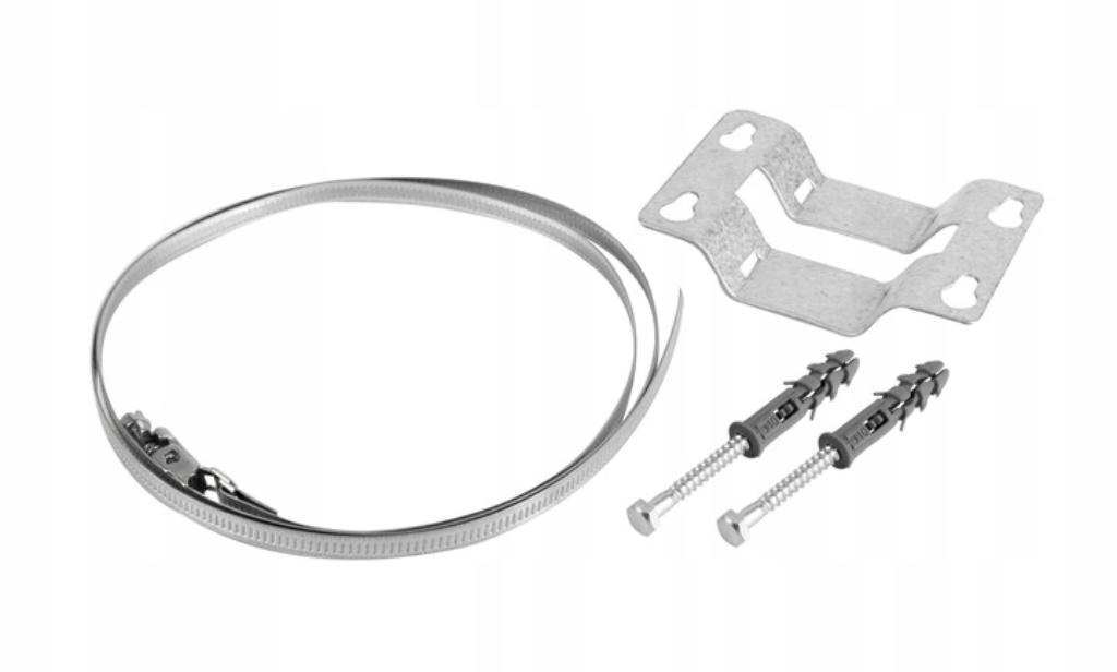 Komplet składa się ze stalowej opaski, uchwytu do ściany i łączników tworzywowo-metalowych.